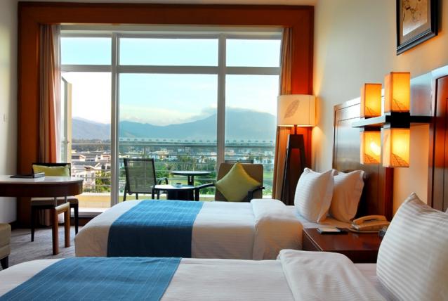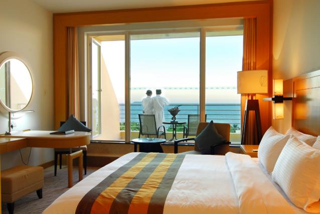 高級海景房,面積42平方米,樓層3-4層,有陽臺(tái),180度海景,前面有遮擋物,大床(1.8*2米),雙床(1.2*2米),有浴缸,免費(fèi)寬帶